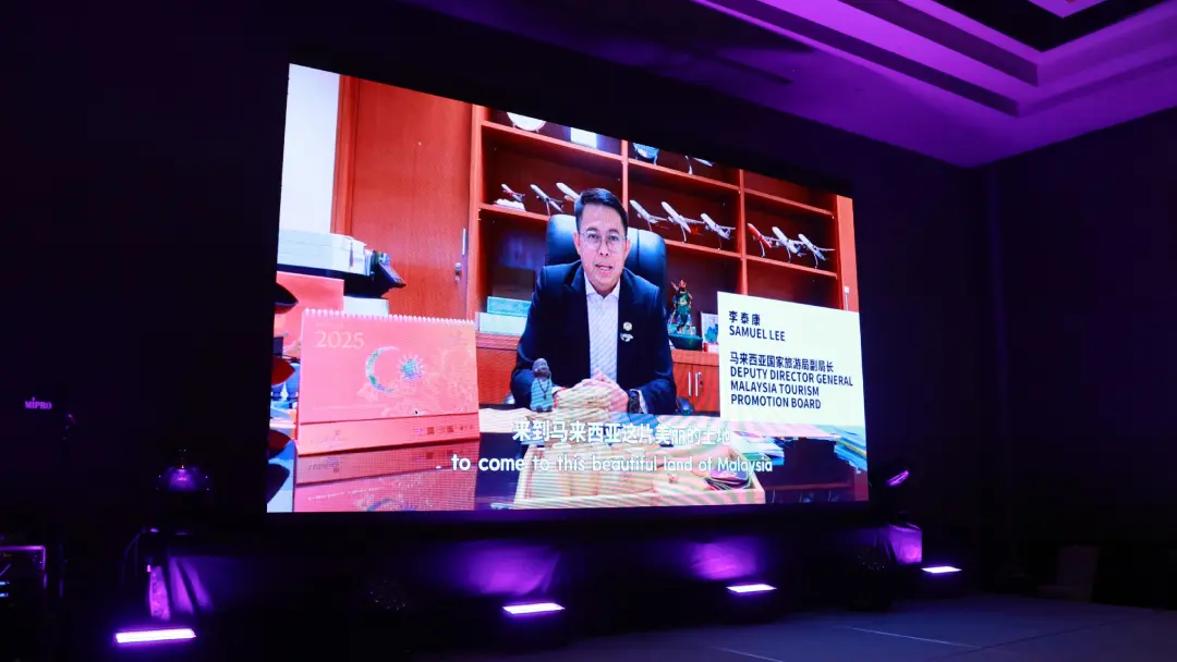 在12月31日口子窖跨年晚宴上,马来西亚国家旅游局副局长李泰康通过视频致辞,2024正逢中马建交50周年,欢迎中国企业家高尔夫球队在此举办年终总决赛。